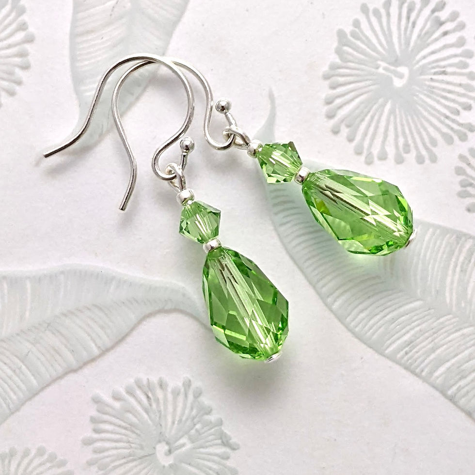 Peridot Vintage Swarovski Crystal Teardrop Earrings Silver Tone Hooks