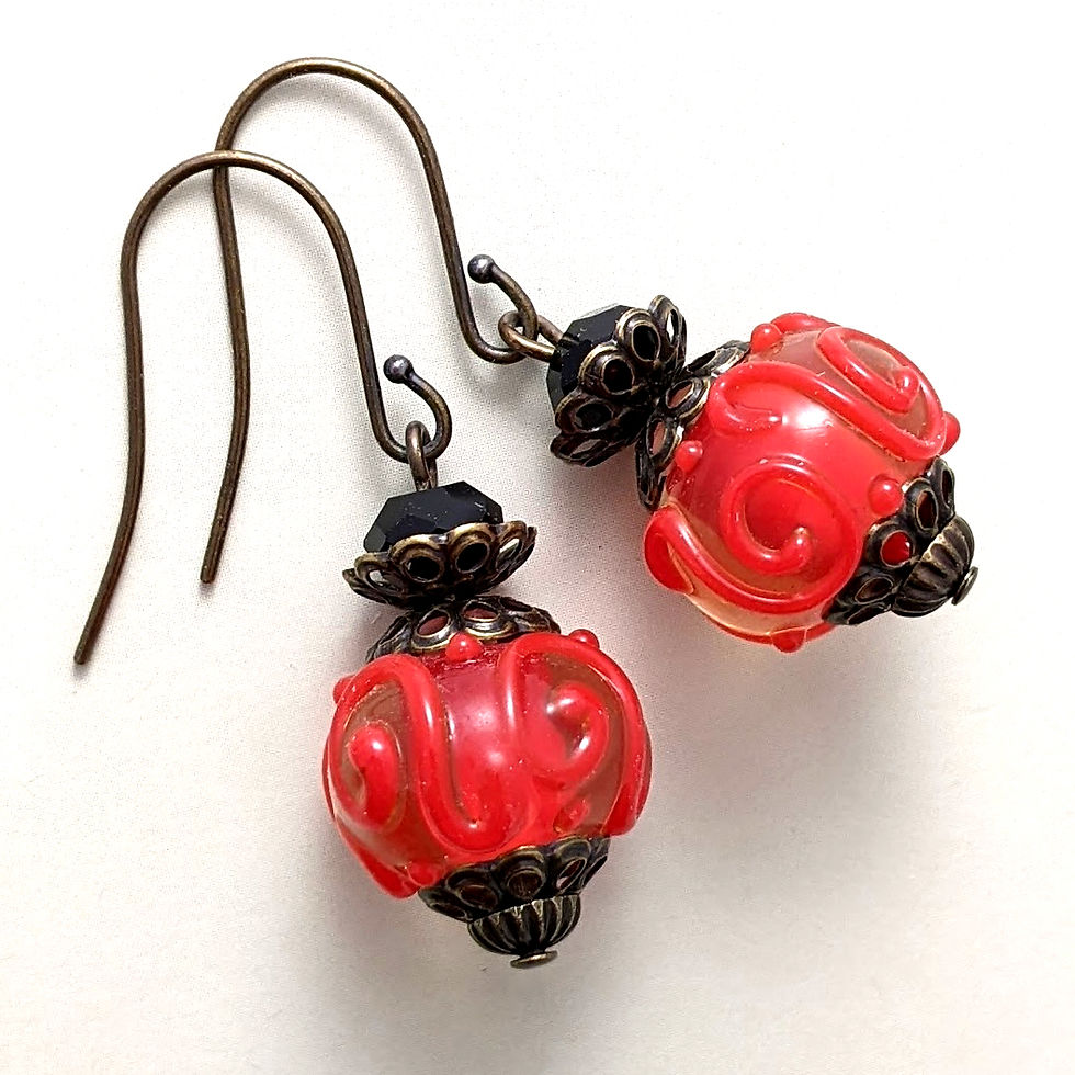 Vibrant Red Earrings Semi Translucent Lampwork Glass Vintage Look AUS Made