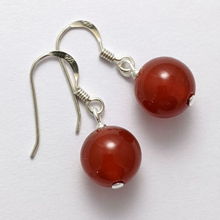 Carnelian Earrings 10mm Round Natural Gemstone 925 Sterling Silver Hooks AUS
