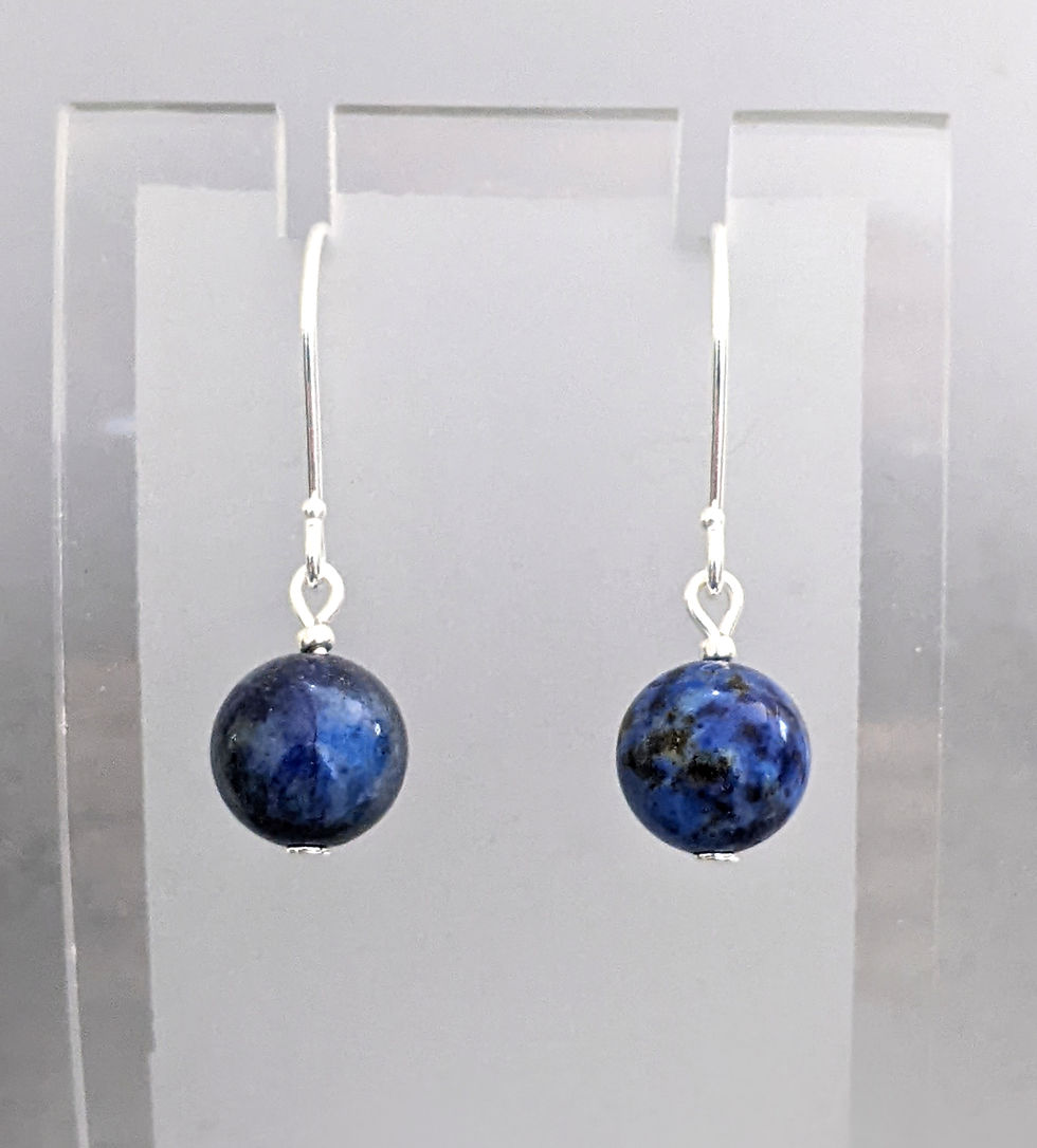 Natural Lapis Lazuli Earrings 8mm Round Crystal Gem Silver Tone Hooks AUS Made