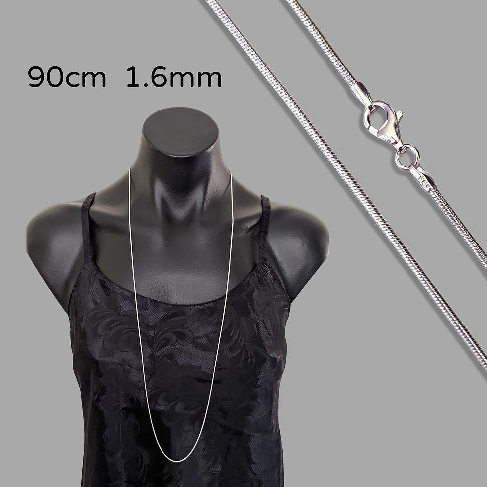 90cm 1.6mm Solid Core 925 Sterling Silver Snake Chain 15.5g Sleek Italian Made